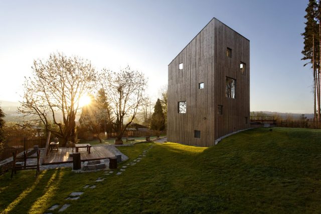 Jednogenerační rodinný dům se nachází na okraji obce Čižice u Plzně, na hranici lesnatého kopce. Inspirací byla odstraněná chata na pozemku a stavebník, který tráví hodně času pozorováním přírody. Cílem majitelů i architektů bylo na hranici lesa nad vsí vystavět raději posed než vesnický dům. Raději dřevo než cihlu. Raději vertikálu než horizontálu. Při stavbě věže byl kladen důraz na práci se světlem. Dům s východní orientací tak díky věži zachycuje do interiéru i západní sluníčko z vyšších pater. Obytné prostory jsou ve věži, zázemí je částečně zapuštěné ve svahu. Věž díky tomu působí subtilně při pohledu od lesa do krajiny. Celá koncepce je korunována střešní pracovnou a vyhlídkou zároveň. Dům hovoří jasnou dřevořečí v exteriéru i interiéru. Hlavním konstrukčním materiálem je smrk. Byl použit jak na nosnou konstrukci, tak v impregnované podobě na fasádě a v interiéru ve formě bělených biodesek.