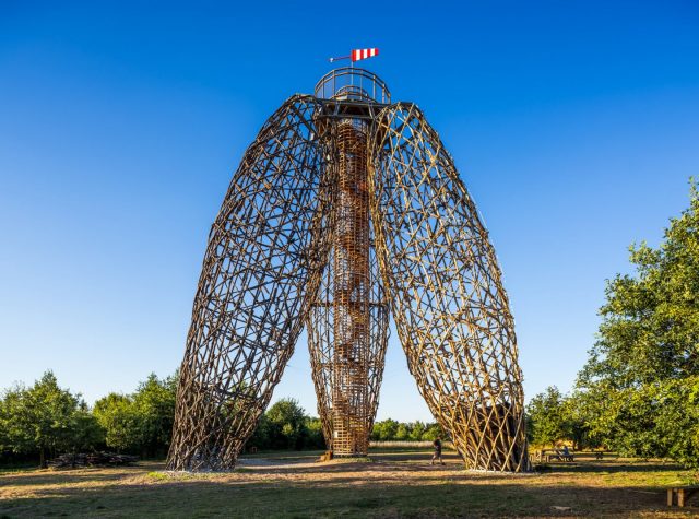 Rozhledna Doubravka ateliéru HAMR Huť architektury Martin Rajniš je výsledkem dlouhodobého experimentování s užitím kmínků při navrhování udržitelné, přírodě blízké architektury a také druhým letošním nominovaným projektem autorů. Ti se při práci na výjimečné zakázce museli utkat s řadou překážek od jejího povolení až po realizaci. Byli úspěšní a Pražané mohou přivítat po sedmdesáti letech novou rozhlednu!//Doubravka Lookout Tower is the result of HAMR Huť architektury Martin Rajniš’s on-going experimentation with bole construction as a means of producing more sustainable structures with reduced carbon footprints. It is also their second nominated work this year. The team supervised by David Kubík dealt with everything from bad weather to a lack of acacia timber to deliver Prague’s first new lookout tower in 70 years.
