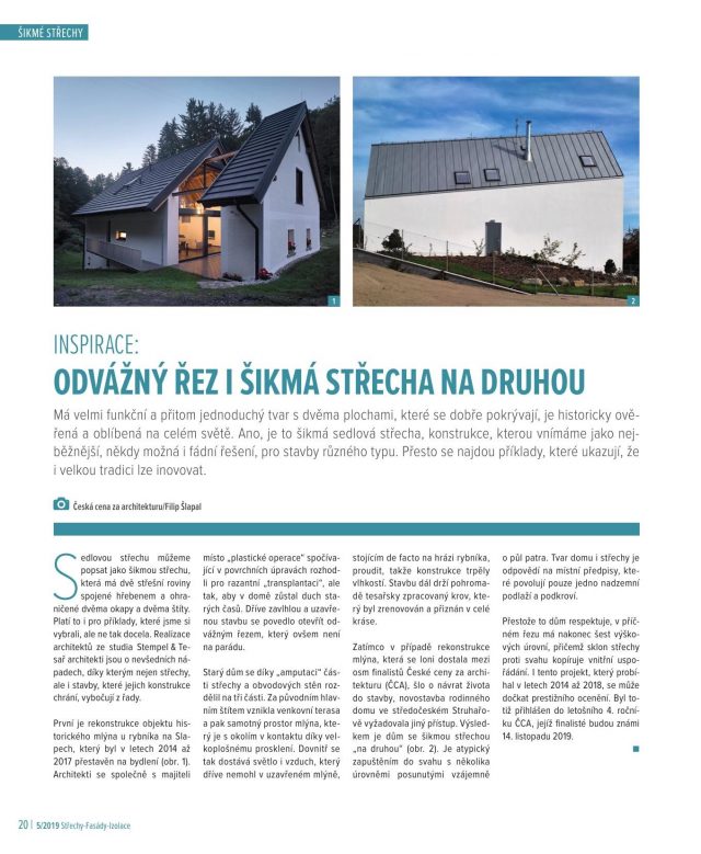 - https://inspirati.cz/2019/05/20/realizace-prihlasena-do-4-rocniku-ceske-ceny-za-architekturu-stempel-tesar-architekti-dum-se-sikmou-strechou2/