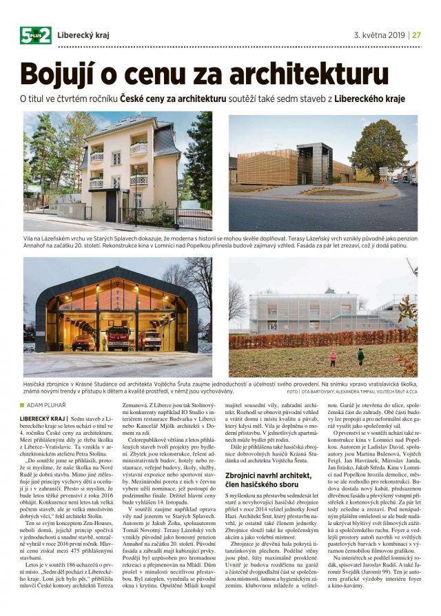 - https://inspirati.cz/2019/05/23/realizace-prihlasena-do-4-rocniku-ceske-ceny-za-architekturu-ma3-architekti-atelier-ma3-architekti/http://mistnikultura.cz/ve-zkratce/ve-zkratce-ze-dne-23052019-od-luk-0