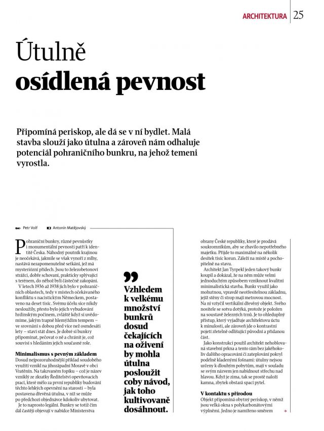 - https://ego.ihned.cz/c1-66564900-utulne-osidlena-pevnost-architekt-jan-tyrpekl-vdechl-prvorepublikovemu-bunkru-novou-roli-v-kontrastu-forem-i-s-uctou-k-minulosti