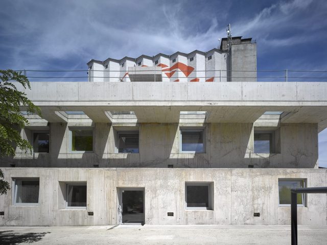 Administrativně správní budova společnosti, která distribuuje a vyrábí betonové směsi a jejíž vedení je nakloněno alternativním technologiím, zdrojům energií i stavebním postupům. Syrové autentické místo s vůní práce. Industriální charakter pozemku má silnou atmosféru díky hučící a nikdy nespící betonárce i čtyřicetimetrovému zemědělskému silu naproti. Náplň činnosti se promítá do neuspořádaného výrazu objektu, který je celý výhradně betonový odlitek. Betonový živočich, jehož forma vychází pouze z funkce provozů, vztahů k okolí, pohybu slunce i pohybu aut kolem. Vzrostlé stromy byly zachovány, dům se jim vyhnul. Pohledový beton různých struktur je na podlaze, stropech, stěnách, objekt sám včetně střechy je vylitý z tepelně izolačního betonu tloušťky stěny cca 1 m, bez jakýchkoliv dalších obkladů, úprav či typických dokončovacích prací. Experiment se souhlasem klientů. Instalace a další stavební prvky jsou viditelné, vedené na betonových konstrukcích, okna jsou oči domu, tvoří obrazy na fasádě. Parkování je na střeše objektu, kde bude i fotovoltaická elektrárna s nabíječkami pro elektromobily nyní parkujícími uvnitř domu. Objekt skrývá prvky, které byly vyvinuty investorem ( 10metrová vyklápěcí vrata sloužící pak jako zastřešení, robot provádějící zdění, detaily zábradlí, pojezdných skel, atd. ).