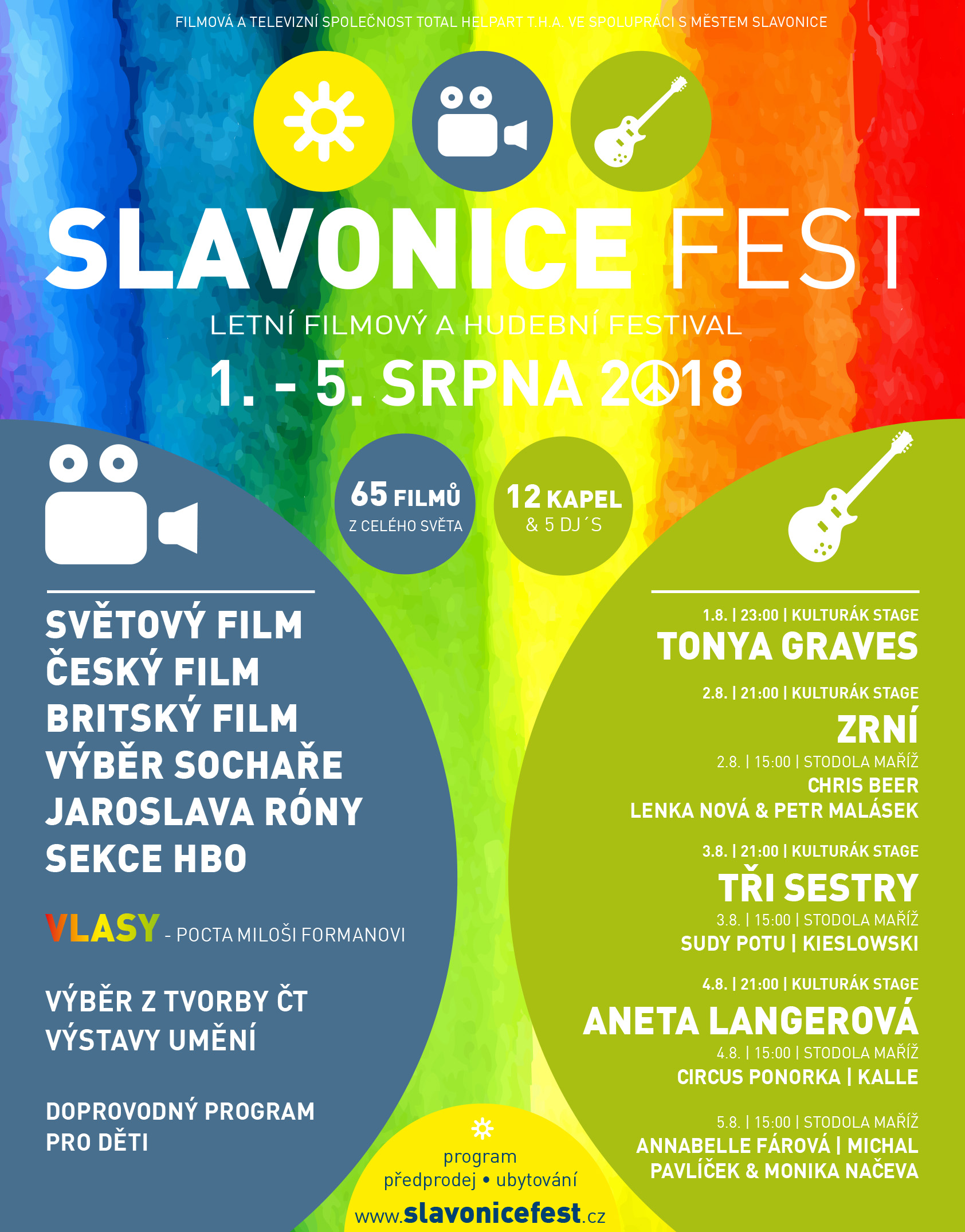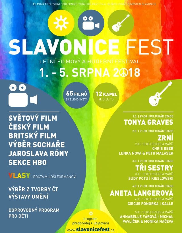 Již pátý ročník filmového a hudebního festivalu Slavonice Fest bude zahájen ve středu 1. srpna 2018 od 21,30 hod filmem Muzikál Vlasy. Během festivalu se můžete těšit nejen na filmové projekce, ale také hudební část festivalu. Čeká Vás i doprovodný program v rámci kterého můžete navštívit Výstavu vítěze a oceněných České ceny za architekturu 2017!