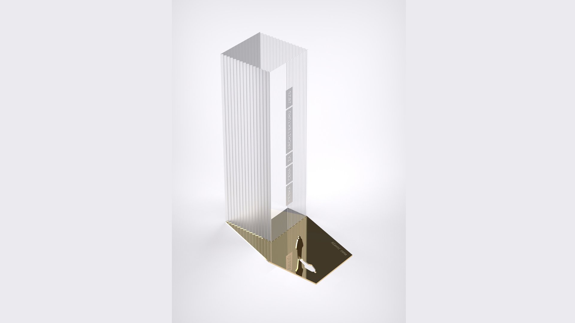 Vítězové o inspiraci: Tento návrh je inspirován tubusem na architektonické výkresy. Trofej symbolizuje samotný pracovní proces a profesní zaměření, což ještě více umocňuje vložený srolovaný „výkres“, respektive diplom. Ten by mohl být graficky pojat jako projekční výkres – s tabulkou, kótami a legendou. Formálně jsme zvolili několik variant ztvárnění tubusu.