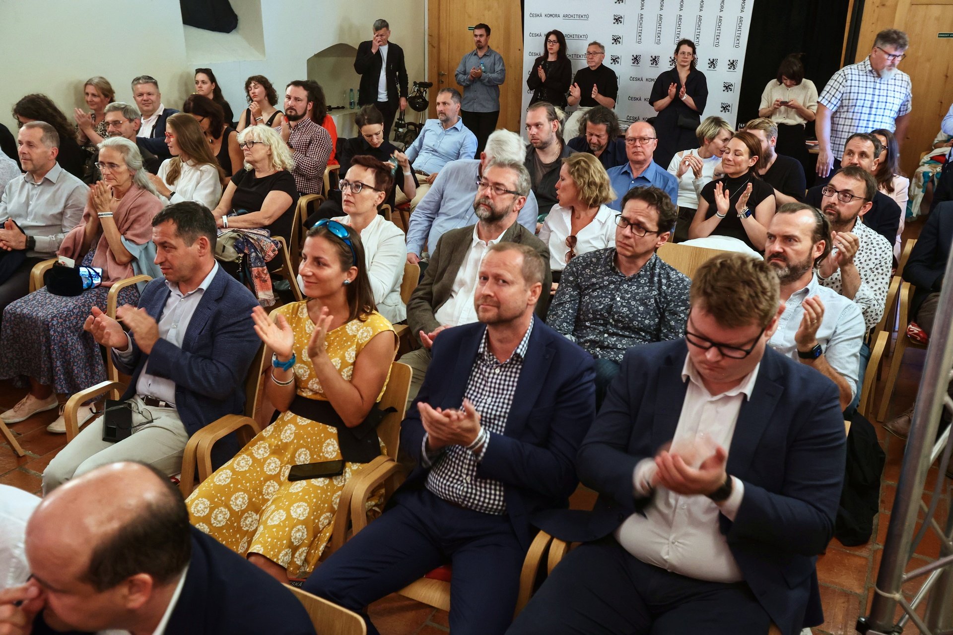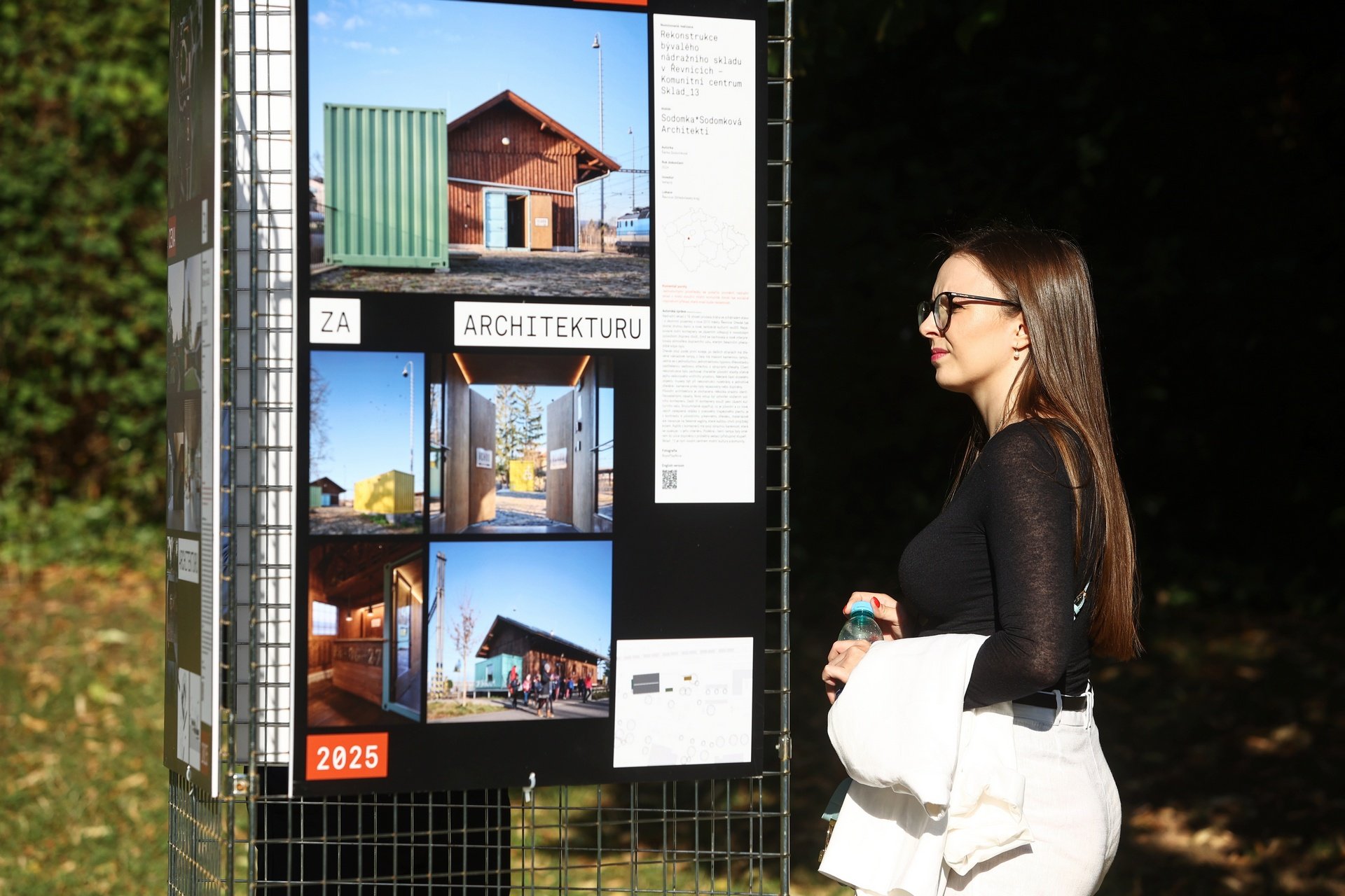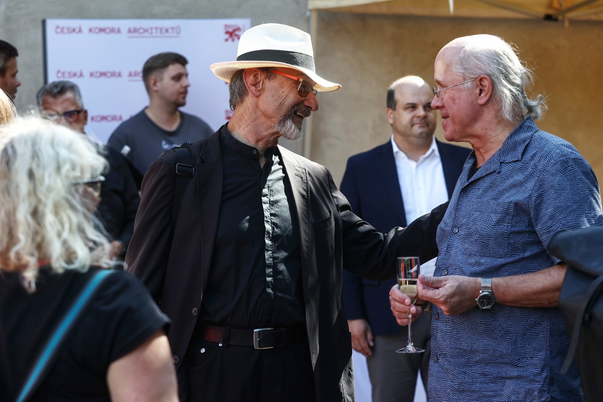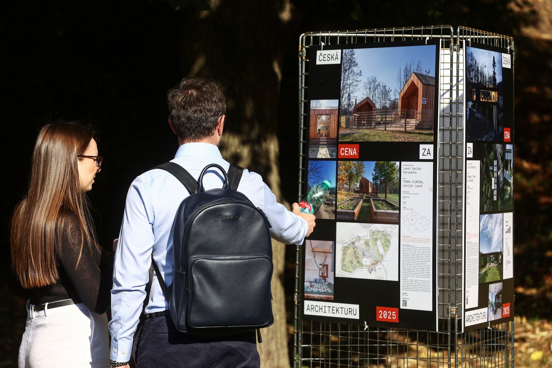 V úterý 29. července proběhla v parku před Starým purkrabstvím na Vyšehradě vernisáž výstavy děl nominovaných na Českou cenu za architekturu 2025.