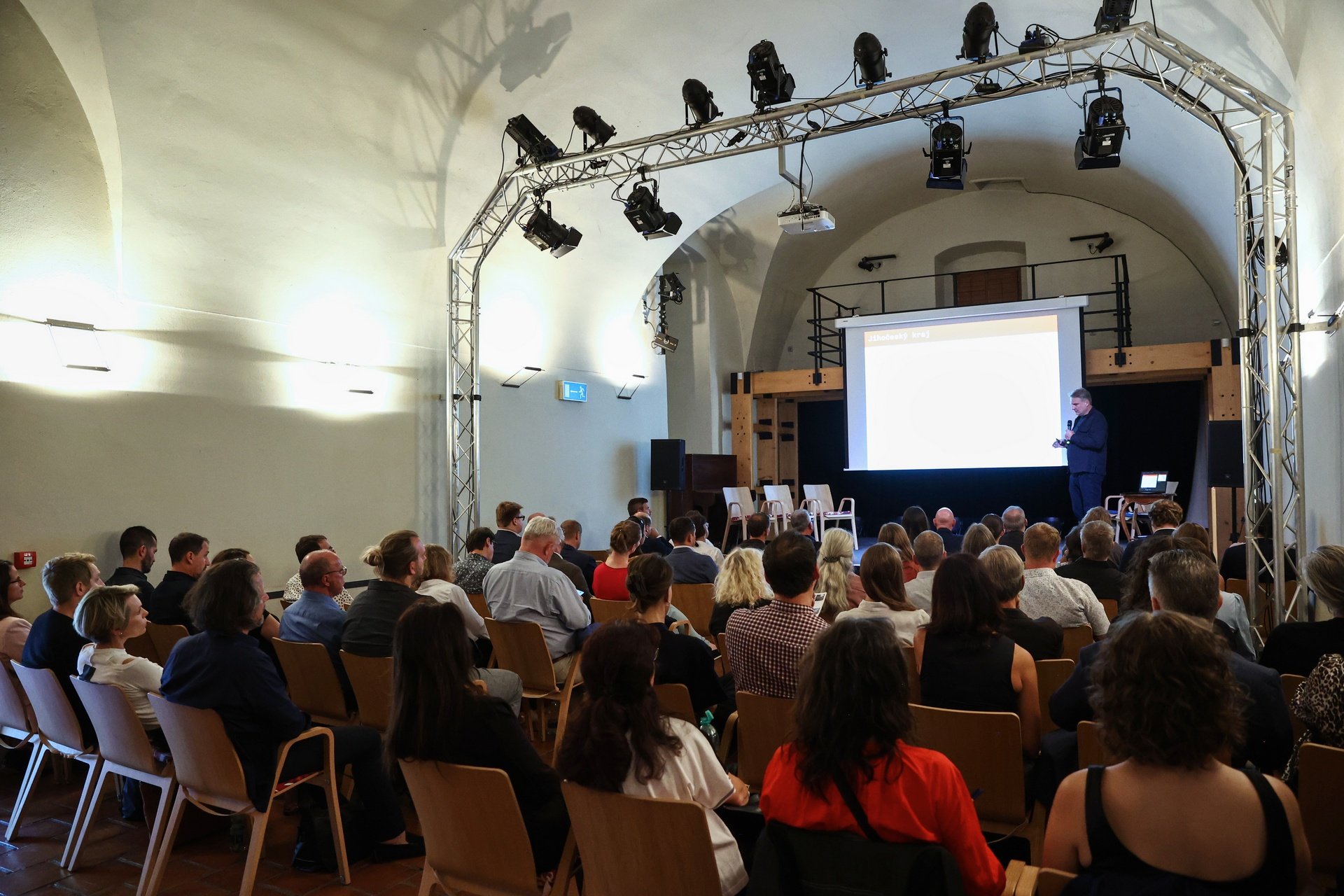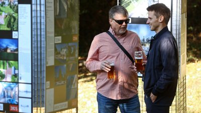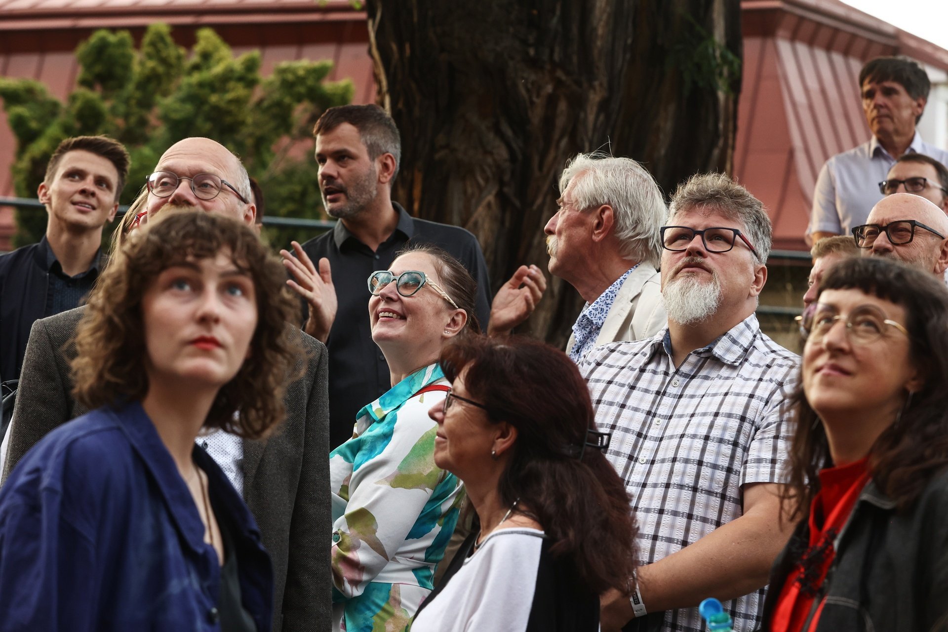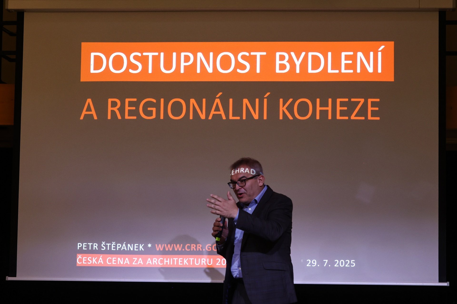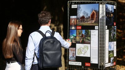 V úterý 29. července proběhla v parku před Starým purkrabstvím na Vyšehradě vernisáž výstavy děl nominovaných na Českou cenu za architekturu 2025.